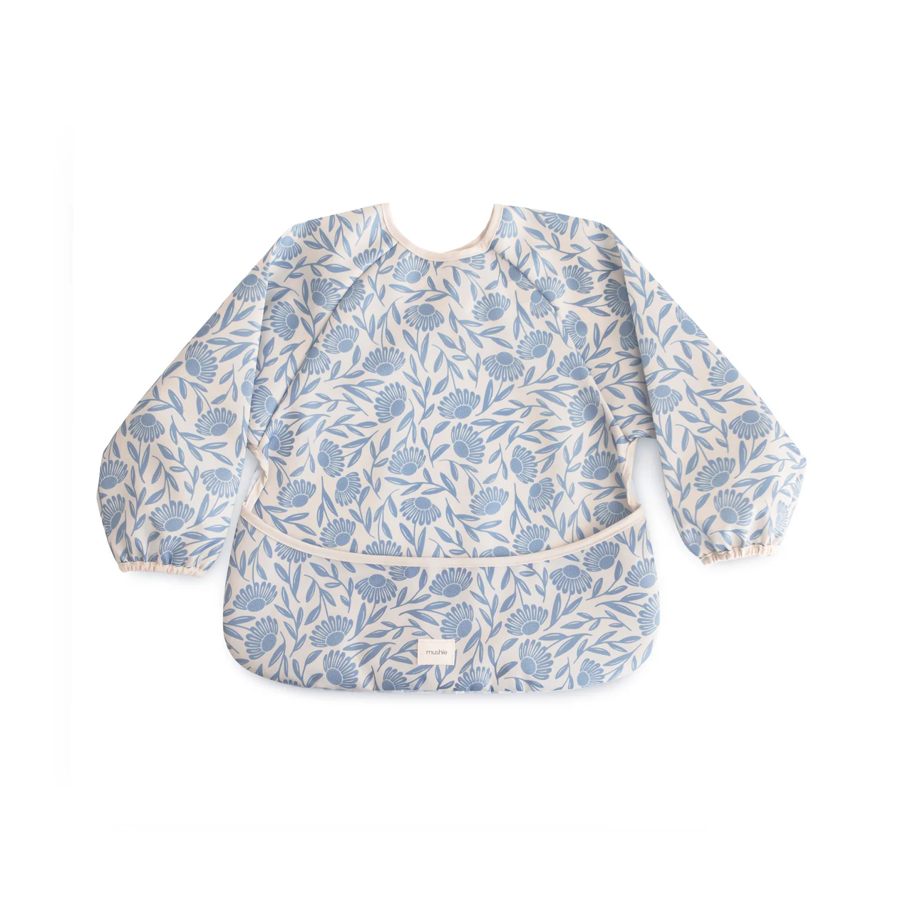 Le Bavoir manches longues fleurs Bleues Mushie est un bavoir innovant conçu pour protéger intégralement les vêtements lors des repas, activités artistiques ou moments salissants. Grâce à ses manches longues et son tissu imperméable, il offre une couverture complète pour garder bébé propre et confortable.