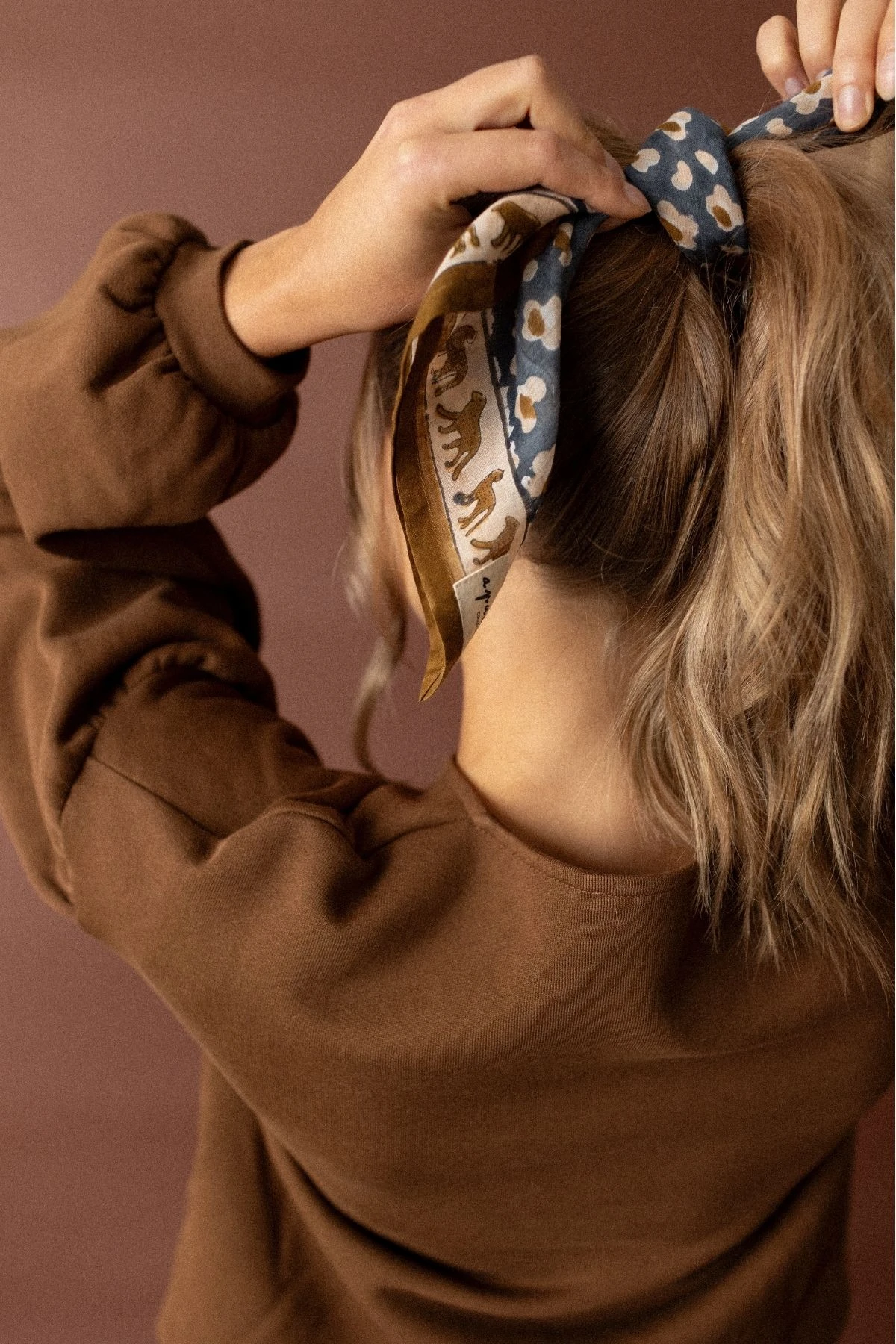 Ce foulard se porte de mille façons : autour du cou pour une touche chic et raffinée, noué dans les cheveux pour une allure bohème, ou encore accroché à un sac pour personnaliser votre style. Grâce à sa douceur et sa légèreté, il s’adapte à toutes les occasions, du matin au soir.